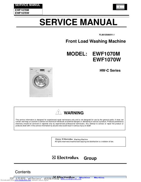 Read ELECTROLUX WASHING MACHINE SERVICE MANUALS EWF Doc